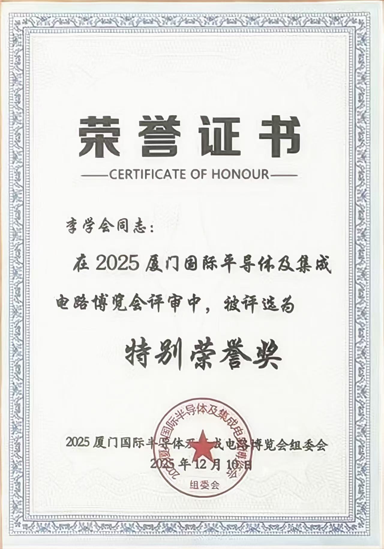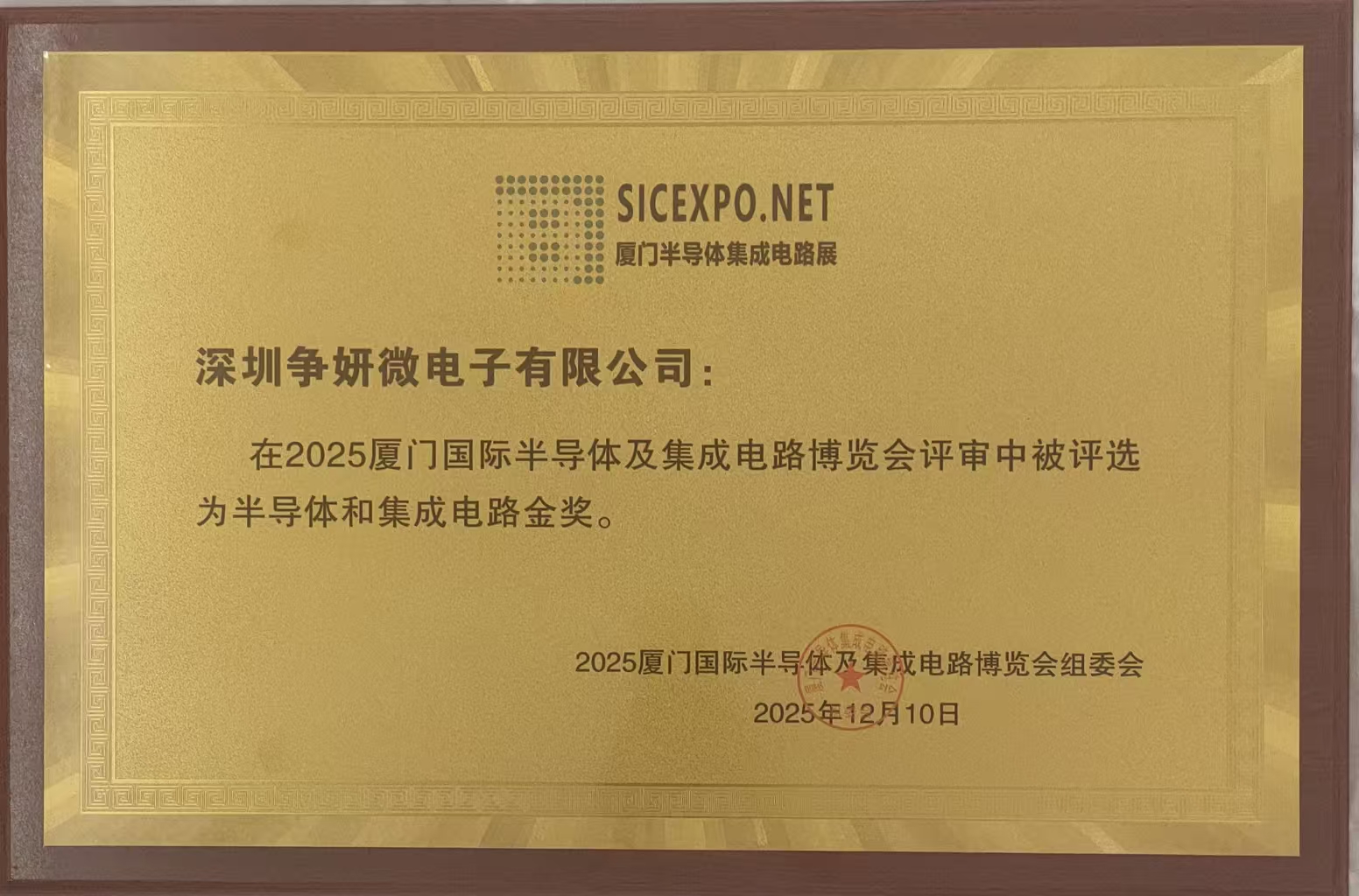 From December 10 to 12, 2025, the Xiamen International Optoelectronic Expo was held at the Xiamen International Conference & Exhibition Center. During the event, Shenzhen Zhengyan Microelectronics Co., Ltd. held a new product launch and engaged extensively with a wide range of domestic and international clients, securing a number of orders. At the exhibition, the company's founder received a Special Honorary Award, and the company was honored with the Gold Award in Semiconductors and Integrated Circuits.